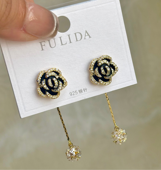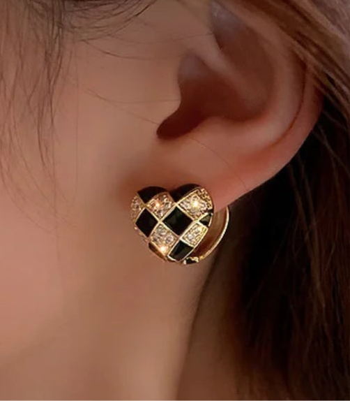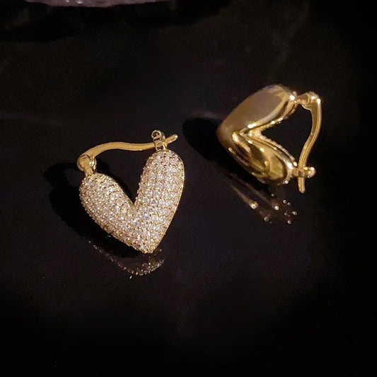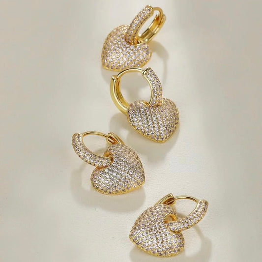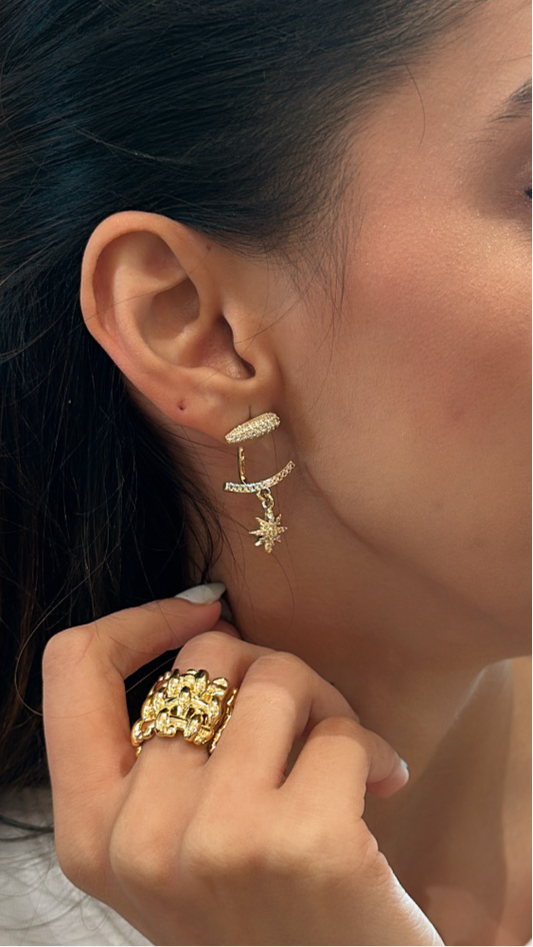 Studded Heart & Ring 2 in 1 Earrings-Gold