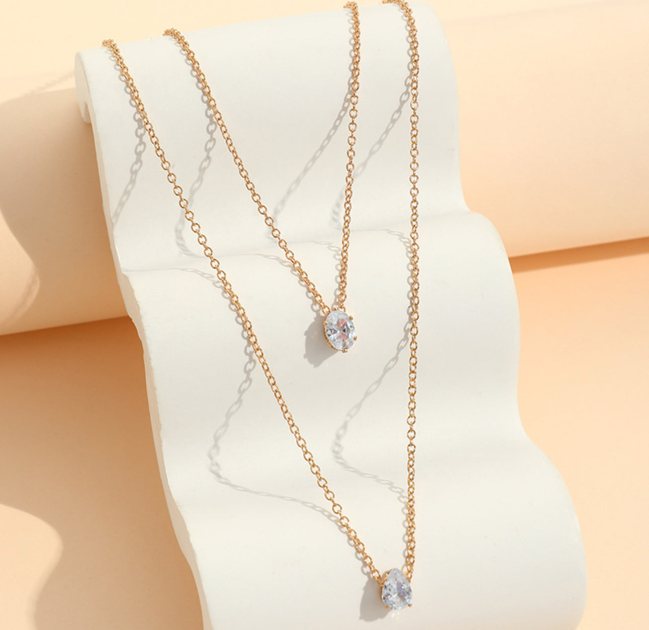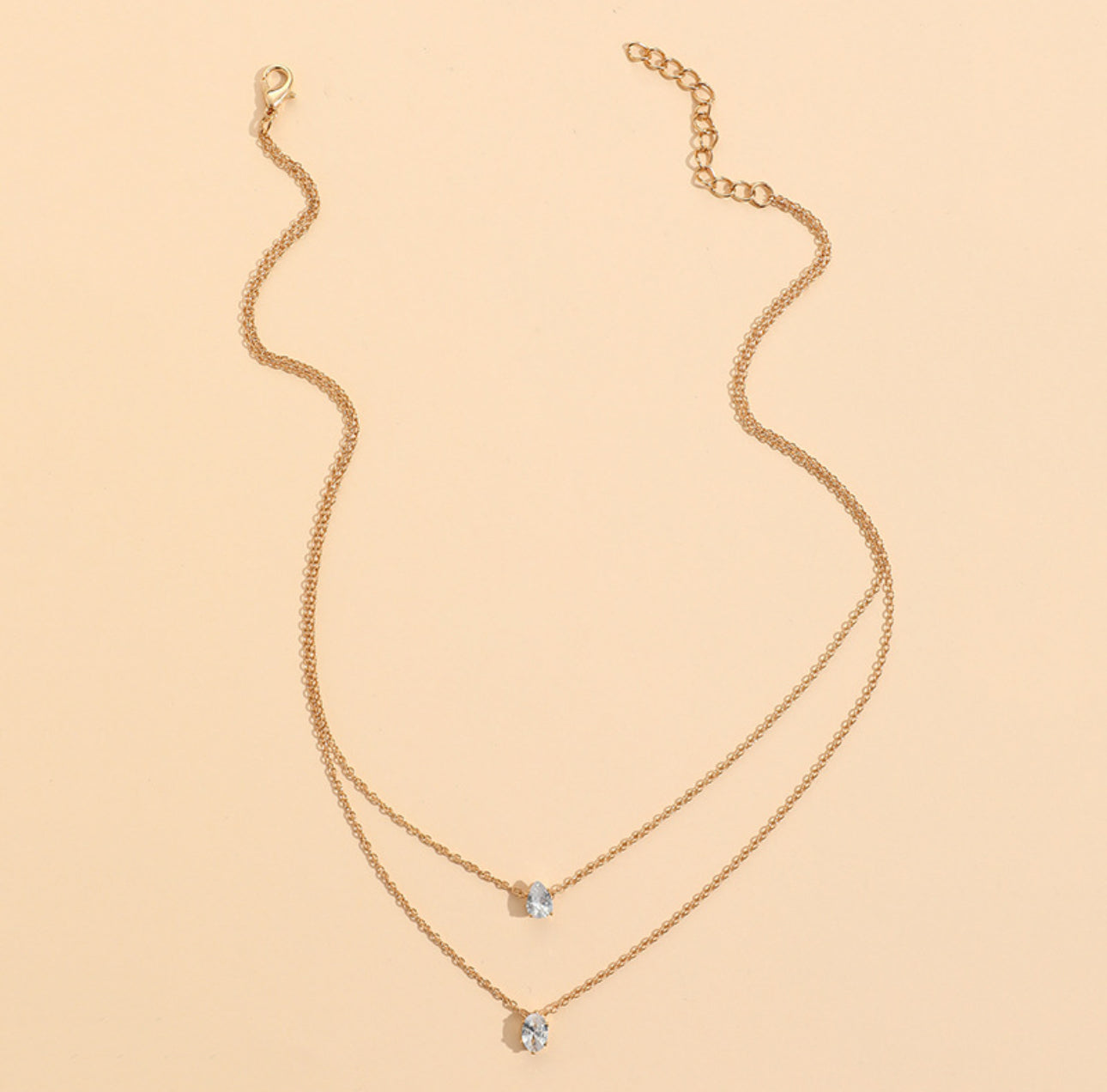 Double Layered Solitaire Gold Necklace